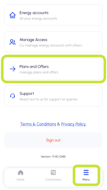 Or, you can find it in the Menu tab - tap ‘Plans and Offers, then ‘More Plans’.